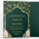 Emerald Gold Paisley Floral QR Code Indian Wedding Tri-Fold Invitation