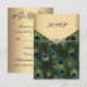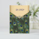 Elegant gold and jewel trim emerald green and royal blue peacock feathers wedding invitation RSVP card. Customize with your choice of font style and font color.