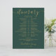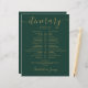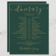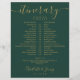 This stylish emerald green and gold wedding itinerary schedule-timeline can be personalized with your wedding details in chic lettering. Designed by Thisisnotme©