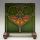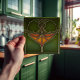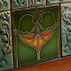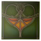 The "Emerald Grace Art Nouveau Ceramic Tile" showcases a mesmerizing design that features flowing, organic lines and a central motif in vibrant orange, framed by rich green hues. The intricate pattern is highlighted with delicate golden accents, adding depth and luxury to the piece. The design captures the essence of the Art Nouveau movement, with its emphasis on natural forms and elegant curves, creating a harmonious and visually captivating composition. Ideal for adding a touch of sophistication to kitchens, bathrooms, or living spaces, this ceramic tile serves as both a functional element and a work of art that brings the timeless beauty of Art Nouveau into your home.