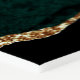 This elegant modern wedding seating chart features an emerald green watercolor agate background trimmed with faux gold glitter. The word "welcome" appears at the top in gold-colored handwriting script. Customize with the names of the bride and groom and wedding date. Edit the four columns with a list of your guests' names and table numbers in gold-colored copperplate font. Accommodates up to 100 names.