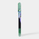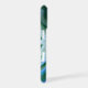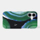 Elegant and eyecatching phone case features a vibrant image of agate geode slices in bright shades of emerald green with blue accents on a black background. Personalize with your initials or monogram tucked into the design in classic white lettering.