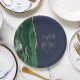 These elegant modern wedding plates feature an emerald green watercolor design trimmed with faux gold glitter. Easily customize the gold-colored text on a navy blue background, with the names of the bride and groom in handwriting calligraphy over a large ampersand.
