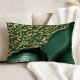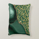 An elegant pattern of gold faux glitter leopard spots on a dark green background combines with emerald agate trimmed with faux gold glitter in this luxurious accent pillow.