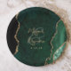 Emerald Green Agate Gold Script Wedding Paper Plates
