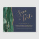 This elegant save the date magnetic card features an emerald green watercolor agate border trimmed with faux gold glitter. The customizable text combines gold-colored handwriting script, copperplate and italic fonts on a navy blue background.