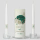 emerald green and beige flowers wedding unity candle set