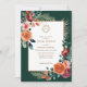 Plain white envelopes are included with paper invitations and will come to fit the invitation size you select. If you don’t need the envelopes, you may choose to not receive them by selecting the dropdown below "Envelopes" and choosing "None." If you’d like to have a design on your envelopes, you can browse all of these available envelopes to find the design that complements your Emerald Green And Burgundy Floral Fall Wedding Invitation.