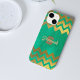 Elevate your phone style with this personalized emerald green and gold chevron iPhone case. Featuring a chic glitter-look background with bold metallic gold zigzag stripes, this design combines modern elegance with a touch of glam. Customize it with your name and monogram initial for a truly unique accessory that reflects your personality.