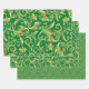 Emerald Green and Gold Scrollwork Wrapping Paper Sheets