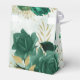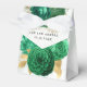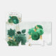 Design features a printed colored with floral element in shades of emerald green over gold leaves and light green watercolor textures and peony blooms. Great for your wedding celebrations!