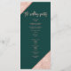 This elegant emerald green and rose gold glitter wedding program template adds a touch of glamour and sophistication to your ceremony. Designed with modern calligraphy and clean typography, one side features your full ceremony itinerary, while the reverse lists your wedding party members. Perfect for formal, classic, or minimal weddings. This vertical layout is fully editable to match your event details. Ideal for autumn, winter, or evening weddings with a rich and chic color palette.