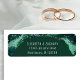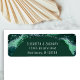 This modern design features a dark green arch shape on a background of emerald green watercolor agate trimmed with faux glitter. Personalize it with your name(s) and address in white sans serif font.