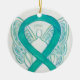 The guardian angel ornament features the painting of a emerald green awareness ribbon angel. Emerald green awareness angel ribbon art can be customized with personalized messages to make great cause ornaments or pendants for fundraisers, awareness Christmas or holiday gifts, or other special events or occasions.