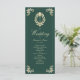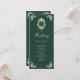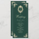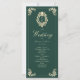 Elegant wedding program card in emerald green with ornate baroque gold flourishes and a luxurious Victorian monogram. This double-sided program provides space for the ceremony order, musical selections, readings, and the wedding party list. A timeless design that perfectly matches an emerald green and gold wedding invitation suite, ideal for couples planning a sophisticated and formal celebration.