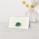 Beautiful romantic wedding place card featuring emerald green and beige flowers and some leaves .