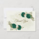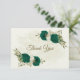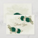Beautiful romantic wedding thank you card featuring emerald green and beige flowers and some leaves .