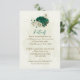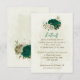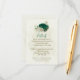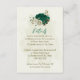 Beautiful romantic wedding reception details enclosure card featuring emerald green and beige flowers and some leaves .