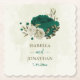 Beautiful romantic paper coaster featuring emerald green and beige flowers and some leaves .
