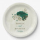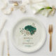 Beautiful romantic paper plate featuring emerald green and beige flowers and some leaves .