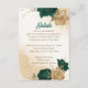Beautiful wedding details enclosure card featuring emerald green and beige gold flowers with green leaves .