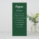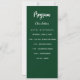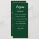 Program and menu card. Personalize and add your name, date and the menu. Emerald green colored background, white text.