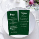 Program and menu card. Personalize and add your name, date and the menu. Emerald green colored background, white text.