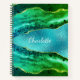 Emerald green and blue agate, marble stone print as background Personalize and add your name. The name is written with a modern hand lettered style script.