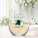 Emerald Green Boho Roses Bridesmaid Maid of Honor Stemless Wine Glass