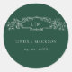 Emerald Green botanical crest monogram wedding Classic Round Sticker