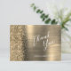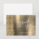 This elegant modern flat wedding thank you card features a faux diamond glitter border on a gold faux brushed metal background. The text is in modern handwriting script and sans serif font, with spaces for guests' names and responses.