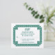 Emerald green celtic knot frame and claddagh wedding RSVP card. This invitation features a celtic knot border in emerald green. The background is white on the front and emerald green on the back. All the wording can be personalized however you want.