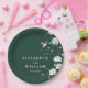 These modern emerald green chinoiserie floral garden wedding paper plates can be personalized with your information in an elegant typography. Designed by Thisisnotme©