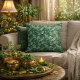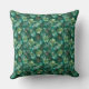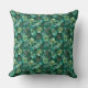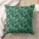 Emerald Green Clover Floral Pattern with Gold Line Art – Elegant Botanical Seamless Design Throw Pillow