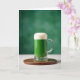 This card shows a clear glass mug centered on a white surface, filled with a rich emerald-green drink that feels ready for a shared toast 💚. A thick layer of creamy white foam sits on top, like a soft cap that invites someone close to lean in and smile. The mug has a diamond-cut base that catches the light in tiny flashes, adding a gentle sparkle without stealing focus from the green drink. Beneath it, a round wooden coaster in deep brown tones warms the scene, like a steady hand under a friendly clink. The background fades into a blurred wash of green shades, making the mug stand out while still surrounding it in St. Patrick’s Day color ☘️. “Happy St. Patrick’s Day” appears near the top in medium-green lettering, with a smaller line of text near the bottom in light gray. The lighting highlights the smooth glass edges and the faint bubbles gathered under the foam. A soft green haze lingers behind the mug, and the coaster’s wood grain curves in a neat circle under the handle.