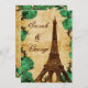 Plain white envelopes are included with paper invitations and will come to fit the invitation size you select. If you don’t need the envelopes, you may choose to not receive them by selecting the dropdown below "Envelopes" and choosing "None." If you’d like to have a design on your envelopes, you can browse all of these available envelopes to find the design that complements your Emerald Green Eiffel Tower Paris Wedding Invite.