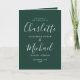 Emerald green signature script wedding program featuring chic modern typography. This stylish wedding program can be personalized with your special wedding day information. Designed by Thisisnotme©