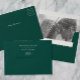 Elevate your wedding stationery with this sophisticated emerald green envelope. The front features the phrase "please deliver to," while the back displays the couple's return address. Inside, a special place is reserved to include a cherished photo, adding a personal touch to your invitation suite. Perfect for ensuring your invitations are both elegant and memorable.