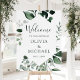 Emerald Green Eucalyptus Greenery Botanical Watercolor Spring Wedding Welcome Sign on White background - includes beautiful and elegant script typography with modern botanical leaves and greenery for the special Wedding day celebration.