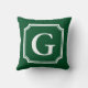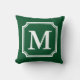 Emerald green fancy border custom monogram throw pillow . Personalized cushions with custom initials.