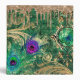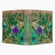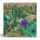 Rich, luxury, gold layered collage of mixed abstract art, featuring faux glitter peacock feathers, butterfly, gold ornaments and black handwriting on an emerald green background. Designed as abstract art with gold drip edge at top. Shimmer green foil textured spine with title template.