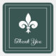 Elegant and simple Wedding thank you sticker featuring a fleur de lis against an emerald green background. This design is a unique choice for a modern wedding. Easy to customize with your wedding details. Click "Customize It" to find more personalization options.