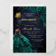 Emerald Green Floral Dress Quinceañera Foil Invitation