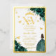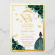 Emerald Green Floral Quinceañera Quince 15 XV Gold Foil Invitation