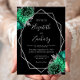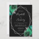 Emerald Green Floral Silver Frame Black Wedding Invitation