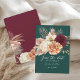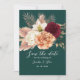 Announce your special day with this boho rustic save the date card featuring elegant watercolor florals in burgundy, ivory, and peach on deep emerald green. Perfect for fall weddings and floral themes. Customize with your names and date. Need help? Contact me: bpkolman@gmail.com
