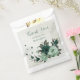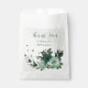 Unique wedding favor bag featuring romantic emerald green and soft green flowers and green leaves