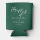 This solid emerald green wedding can cooler features classic white script for a couple getting married in a forest or other nature venue. Celebrate your love with this tranquil color and coordinate this keepsake favor with our matching minimalist typography collection.