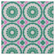 Elevate your next sewing or DIY project with this stunning geometric design. This intricate pattern features a repeating array of circular rosettes and medallions, evocative of vintage tile work or a classic kaleidoscope. The color palette combines a deep, sophisticated emerald teal green with vibrant pops of fuchsia pink and magenta, set against a crisp background for high contrast.