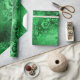Metallic emerald green damask patterned wrapping paper.